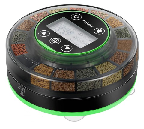 Feeder OptionsA must-have is a test feed button that allows you to test your settings. If the feeder you are considering purchasing doesn't have one, don't buy it.Mounting options may be important if you have limited places where you can mount a feeder. Some come with multiple options, such as on the cover or attached to the glass side. WiFi and smartphone app controls are starting to be features on some feeders, as are cameras. Recharging by USB cable is now common, eliminating the need to replace batteries. Feeder LocationAll feeders are susceptible to moisture getting into the food, so keep the food outlet away from air stones, filter outlets and anything that creates splashing. Obviously, also keep it away from filter inlets.Read ReviewsAn advantage of buying from Amazon is the reviews. A quick scan soon tells you the failings of a particular feeder.As an example, the reviews I read about a silo feeder, which had many excellent features, noted its poor delivery of small, granular foods, as it consistently fed too much. My ChoiceI needed a feeder that could last for up to two weeks, deliver a precise amount of food, and wasn't susceptible to water ingress.I am feeding a 3mm pellet food, as no feeders are currently able to feed gel or frozen foods. I chose a platter feeder, the one shown above, which is sold under several different brands. The features that appealed were:
