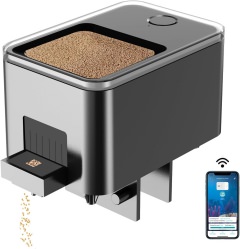 I wouldn’t use flake food as the dust could cause problems, as it did in my drum feeders. Reviews are generally very good for this feeder, but battery problems are the primary issue causing poor reviews. All of mine are fine so far after several months of use. If you think a feeder would be useful, for instance, holidays or midday feedings when you aren't at home, have a look at the options available on Amazon. I will receive a small (emphasis on small) commission from Amazon, at no additional cost to you, if you purchase a feeder using the link above.