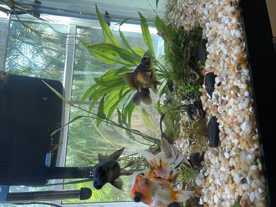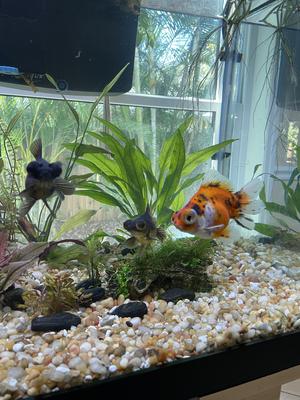 I know the two color types should be separate but I don't have another tank to do that and have so many going already, I don't think I can handle another one but I am watching a friends fish who is going to pick them up somewhat soon so in the near future I will have a 10 g tank that I can put the calico in probably because I feel like there are less of those. Also, when can I fill the tank completely up and switch from a sponge filter to a normal filter?