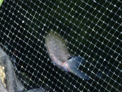 It does not "lay" in the deeper parts of my pond but always on the shelf however, when I get near the fish, it suddenly swims quickly away in a normal fashion as if there is nothing wrong.